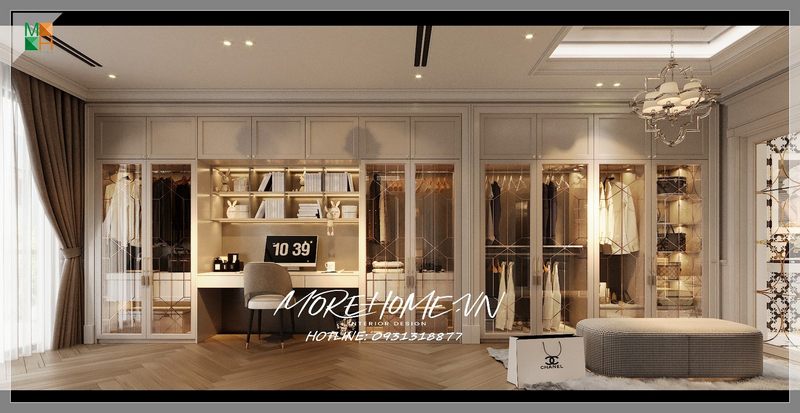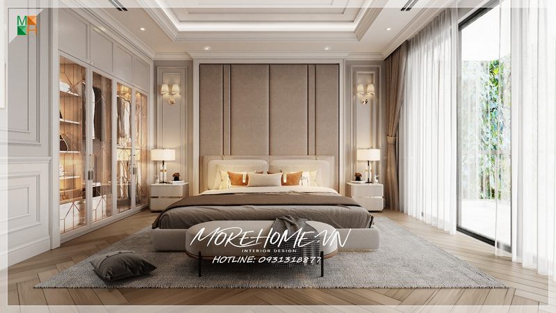 Phòng ngủ biệt thự được thiết kế theo kiểu dáng tân cổ điển vô cùng sang trọng và cuốn hút, góp phần mang đến cảm giác thoải mái, thân thiện và dễ chịu, cho người dùng có được giấc ngủ sâu hơn